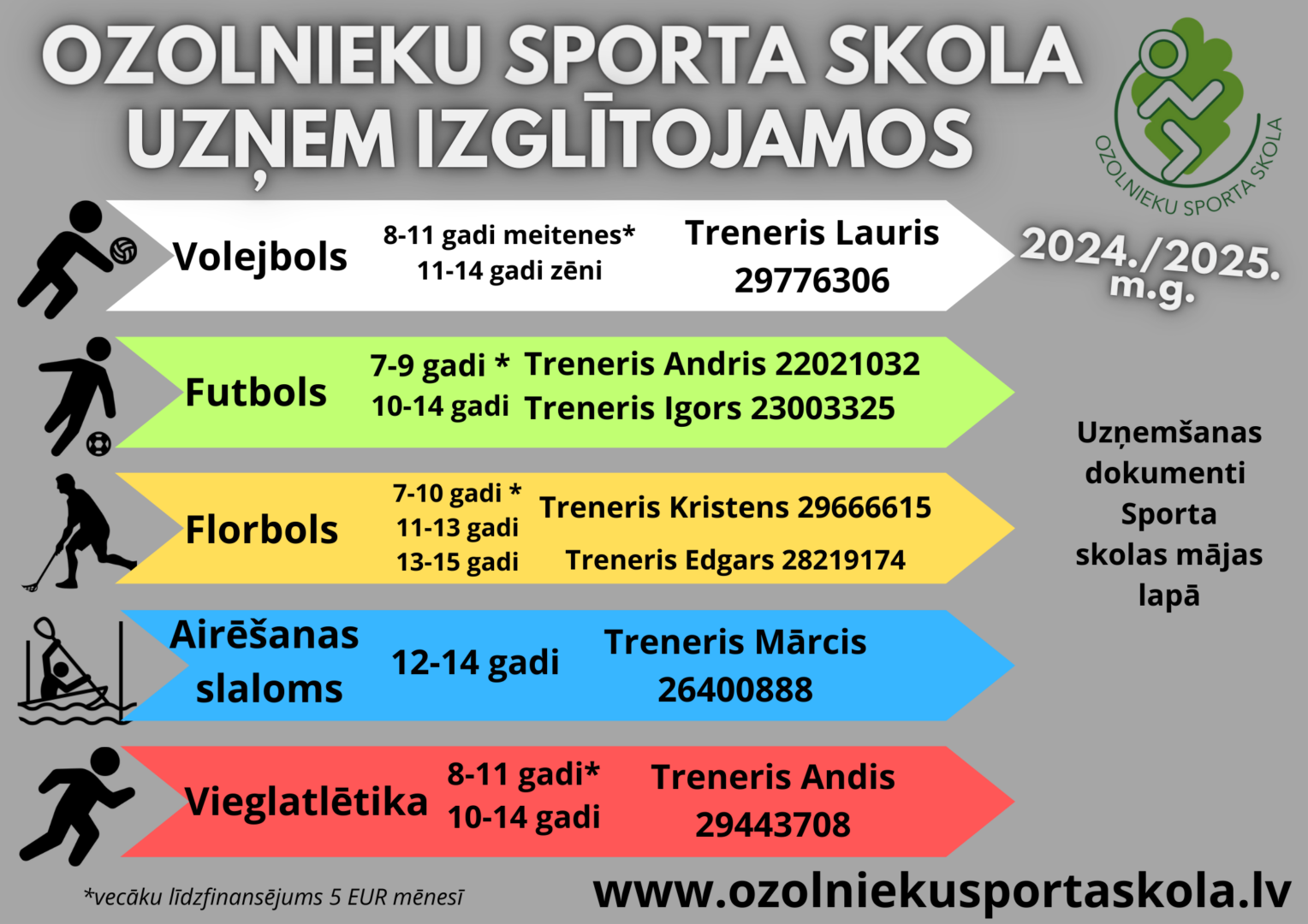 Ozolnieku Sporta skola uzņem izglītojamos